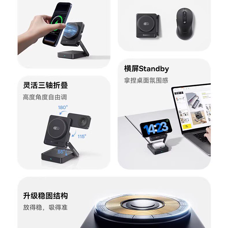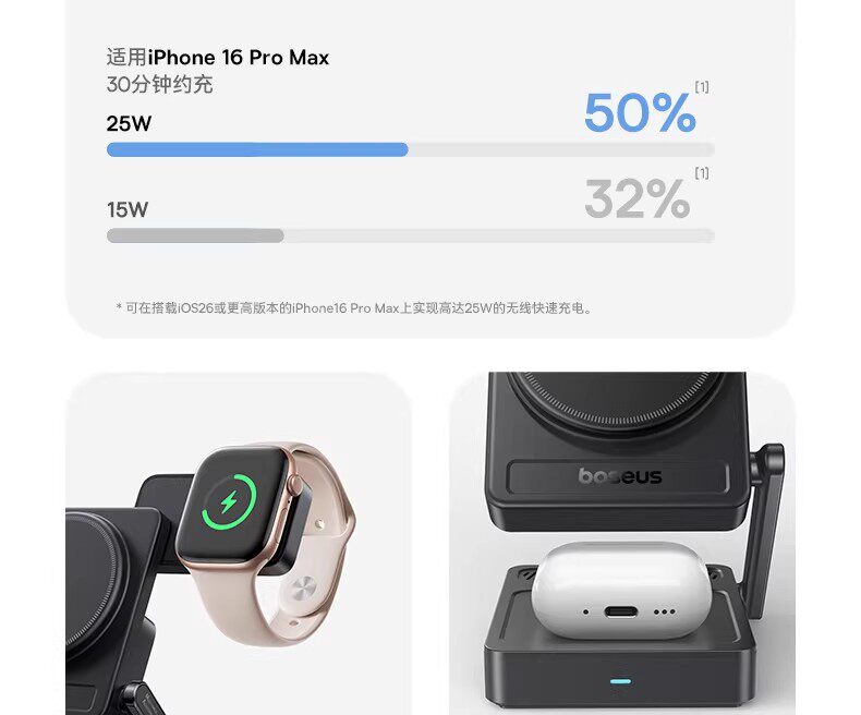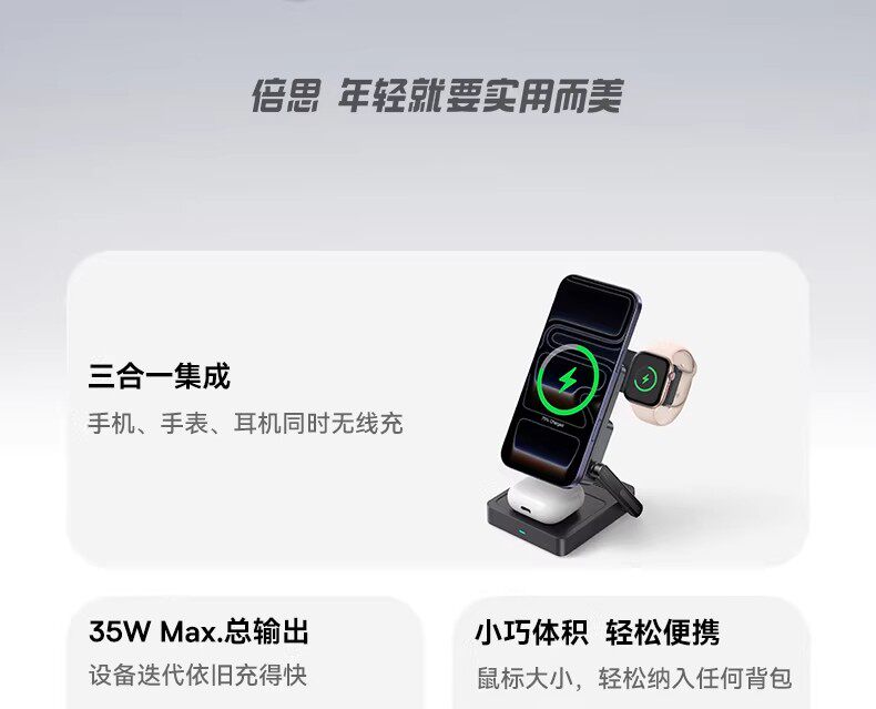 倍思35W三合一磁吸无线充电器