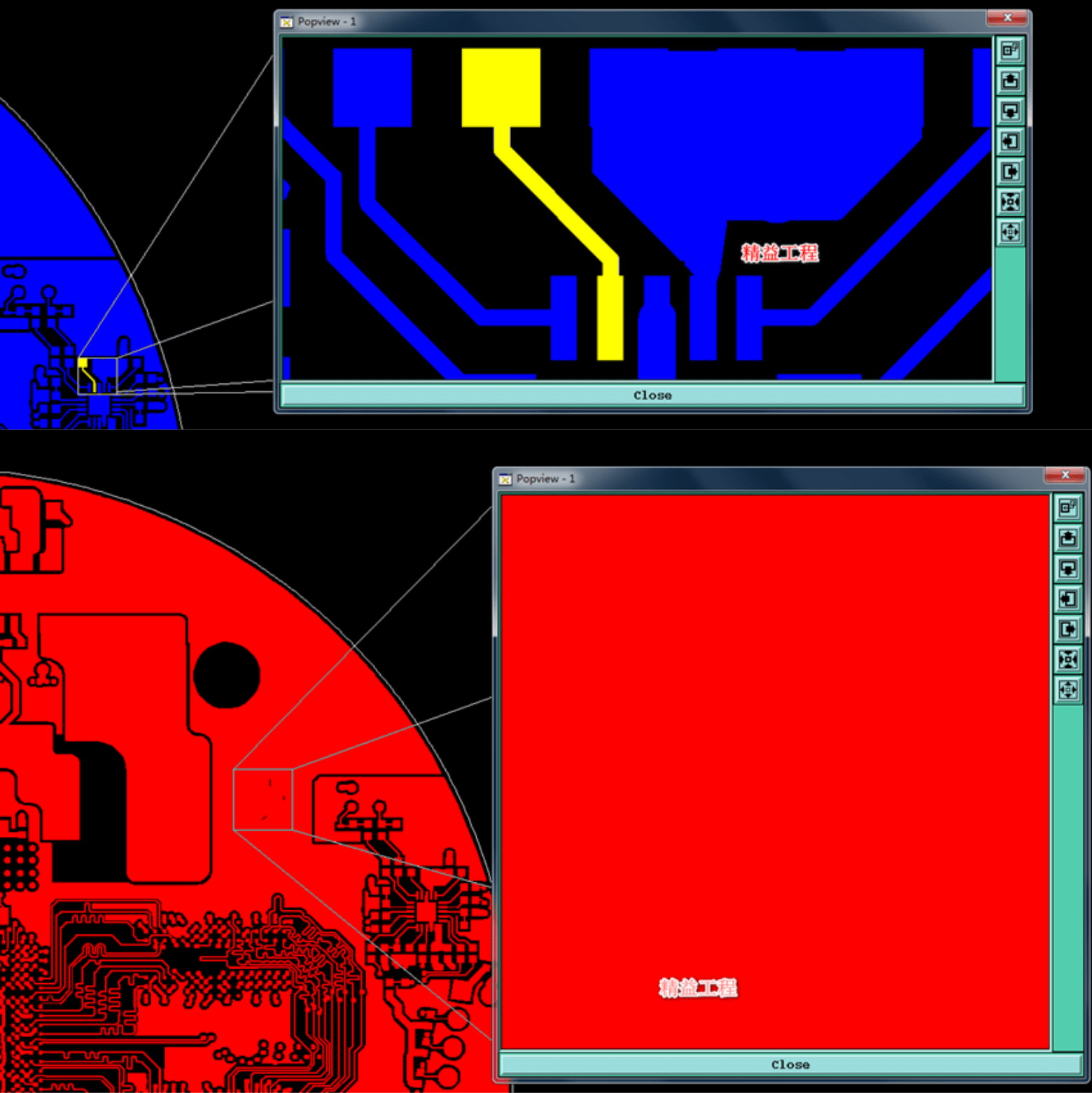 在客户给出准确的要求后,可以定制多色阻焊制作,工程人员可以细心来处理多色阻焊资料,做出多种阻焊颜色的效果 示意图