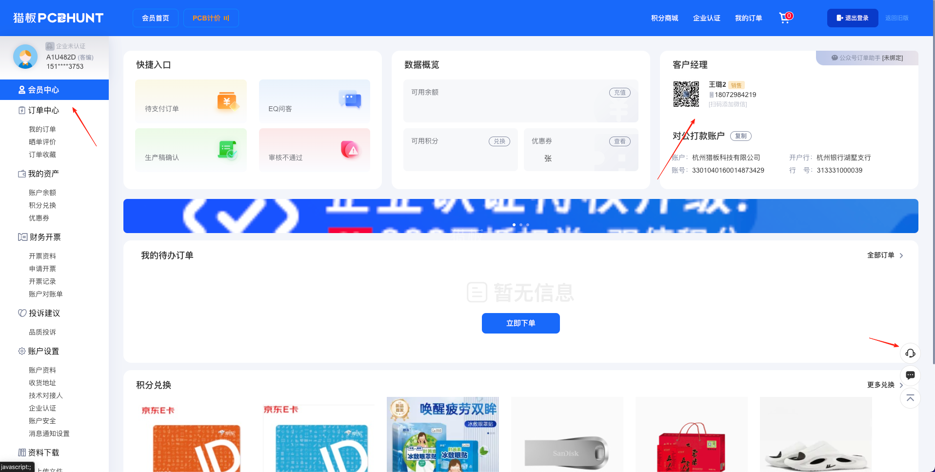 三、账号创建成功后系统会跳转到【会员中心】,建议您根据页面提示,了解最新的营销活动!